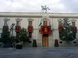 Neste período, partidos como o Partido Socialista Operário Espanhol (PSOE) e o Partido Republicano Autónomo de Granada conseguiram algutinar uma parte importante da população que será decisiva nas eleições municipais de 12 de abril de 1931, nas quais obtiveram 30 dos 45 lugares em disputa. No primeiro período da Segunda República (1931–1933), a cidade foi governada por esses dois partidos, apesar do Partido Republicano Autónomo se ter desagregado em 1933. Parte dos republicanos autónomos aderiu ao Partido Republicano Radical, que cresceu em votos a ponto de igualar o PSOE em 1933. Foi um tempo de conflitos sociais na cidade, com numerosos distúrbios e confrontos nas ruas, protagonizados sobretudo por trabalhadores do setor açucareiro que eram muito ativos.[58] As posições conservadoras da Ação Popular e da União de Direitas também foram reforçadas com vista às eleições gerais de 1933. Estas forças políticas ganharam essas eleições juntamente com os radicais, e após o governo municipal ter sito destituído, governaram o ayuntamiento com os radicais através duma "comissão gestora". No período de 1933 a 1936, o Partido Radical praticamente desapareceu em Granada e a conflitualidade social cresceu. A vitória nas eleições foi inicialmente atribuída à direita, mas houve tantas irregularidades que os protestos dos socialistas fizeram modificar os resultados.[59] Quando a guerra civil estalou em 1936, Granada tornou-se uma zona sublevada isolada entre zonas controladas pelo governo republicano, o que deu origem, sobretudo nos primeiros meses, a um elevado número de detenções e execuções políticas — entre 1936 e 1956 foram fuziladas 3 969 pessoas nos muros do cemitério de Granada, entre elas o poeta García Lorca.[60]