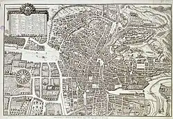 Depois desta época de grandes mudanças, a cidade sofreu outras modificações importantes na sua imagem e estrutura desde meados do século XVI até meados do século XIX. Na primeira metade deste período verificou-se um declínio acentuado, tanto económico como social, devido à cidade não se ter recomposto das perdas causadas pelas "castelhanização", que afetou atividades como a produção de seda e a agricultura de regadio, da expulsão dos mouriscos[41] e duma longa série de catástrofes naturais (inundações, terramotos, etc.) e epidemias, especialmente de tifo. A população passou dos quase 70 000 estimados para o primeiro terço do século XVI[39] para 30 000 no censo de 1718.[42] No decurso do século XVII registaram-se vários conflitos violentos e "motins de subsistência", motivados pela má situação económica, tendo que foram especialmente graves em 1648. Quer a população quer a economia recuperaram no século XVIII, sobretudo em resultado duma forte diminuição da taxa de mortalidade e pela imigração vinda do resto da Andaluzia. Esse desenvolvimento manifesta-se no importante património barroco. A população ultrapassou os 50 000 habitantes em 1752, segundo o cadastro de Ensenada,[43] um número que permanecerá estável durante muito tempo.[e] Na segunda metade do século XVIII foram realizadas várias obras urbanas importantes: os passeios (espaços ajardinados) da Bomba, do Salón e do Violón, todos eles junto rio Genil, e a praça de touros do Triunfo (1768). Mas também foram demolidos algumas construções emblemáticas, como o castelo de Bibataubín ou a Porta Real (1790).[carece de fontes]