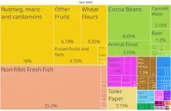 A agricultura compreende aproximadamente um quinto do produto interno bruto e emprega um terço da força de trabalho.[18] A terra cultivável é pouco aproveitada e os principais produtos agrícolas, basicamente destinados à exportação, são o coco, a banana, a cana-de-açúcar, as cítricos, especiarias e frutas tropicais.[27]