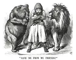 A partir de 1873, a Rússia iniciou tentativas de expansão em direção à Pérsia (atual Irã) e o Afeganistão. Os russos queriam um acesso ao Oceano Indico, através do Afeganistão; a Inglaterra desejava transformá-lo em Estado-tampão, para proteger a Índia do expansionismo russo.