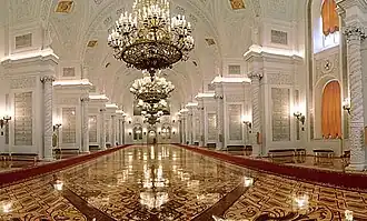 O Salão de São Jorge (Георгиевский зал) está situado no piso superior por trás da fachada lateral direita do palácio. O salão possui 61 metros de comprimento, 20,5 de largura e 17,5 de altura. Nomeado de acordo com a mais alta condecoração do império czarista, a Ordem de São Jorge (também chamada de Cruz de São Jorge), instituída em 1769 e destinada a distinguir feitos militares, é o mais magnífico dos grandes salões do Grande Palácio do Kremlin e tem sido tradicionalmente usado para as mais elevadas honrarias e altas distinções. Por exemplo, na época soviética foi aqui entregue o título honorário de Herói da União Soviética; em 1961, foi homenageada neste salão o pioneiro da navegação espacial Iuri Gagarin e, em 1945, o vencedor na guerra contra a Alemanha nazi. Além disso, actualmente realizam-se conferências internacionais no Salão de São Jorge, particularmente importantes encontros diplomáticos.