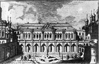 Depois do ano de 1493, quando um incêndio particularmente devastador consumiu novamente uma grande parte do Kremlin, incluindo as câmaras em madeira dos grão-duques, começou a construção do primeiro palácio de pedra, o Palácio das Facetas, edificado especialmente com fins representativos como complemento da residência principal dos grão-duques.