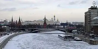 A partir da Ponte Bolshoy Kamenny também se alcança uma vista representativa do Grande Palácio do Kremlin. Dentro do conjunto do arquitectónico do Kremlin encontram-se Grande Palácio do Kremlin e os edifícios anteriores nele englobados junto à muralha a sul, o Palácio do Arsenal a oeste, o antigo palácio dos congressos (hoje oficialmente: Palácio Estatal do Kremlin) a norte e a Praça das Catedrais (com a Catedral do Arcanjo São Miguel, a Catedral da Dormição e a Catedral da Anunciação) a leste.