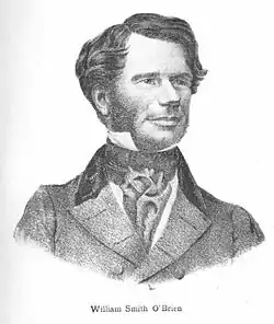 Em 1847, William Smith O'Brien, o líder do partido Jovem Irlanda, tornou-se num dos fundadores da Confederação Irlandesa,[96] e fez campanha para abandonar o Ato de União de 1800, reclamando o fim das exportações de alimentos e o encerramento dos portos.[97] No ano seguinte O'Brien organizou uma resistência de trabalhadores sem terra no Condado de Tipperary contra os proprietários de terras e seus agentes.