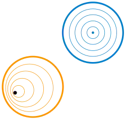- ↑ O mesmo é verdade para qualquer corpo F em vez de Q. Veja Lang 2005, §III.1, p. 86.