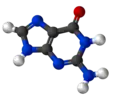 Com a fórmula C5H5N5O, a guanina é um derivado da purina, consistindo em um sistema de anel pirimidina-imidazol fundido com ligações duplas conjugadas. Este arranjo insaturado significa que a molécula bicíclica é plana.
