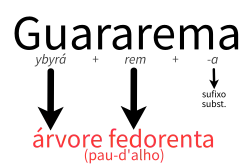 Guararema vem do tupi ybyrá, árvore, pau, e rem, fedorento, mais o sufixo substantivador -a, significando árvore fedorenta (o pau-d'alho, árvore símbolo do município).[7]
