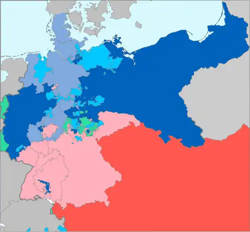 Azul claro - Ganhos territoriais prussianos após o conflito