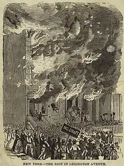 Quando a Proclamação de Emancipação entrou em vigor em janeiro de 1863, ex-escravos foram recrutados ativamente para cumprir as cotas estaduais. Os estados e as comunidades locais ofereciam bônus em dinheiro mais altos para voluntários brancos. O Congresso endureceu a lei de recrutamento em março de 1863. Os homens selecionados no recrutamento podiam apresentar substitutos ou, até meados de 1864, pagar uma taxa de isenção. Muitos homens elegíveis juntavam dinheiro para cobrir o custo de quem fosse convocado. As famílias usavam a cláusula de substituição para escolher qual homem deveria ir para o exército e qual deveria ficar em casa. Houve muita evasão e resistência ao recrutamento, especialmente em áreas católicas. Os tumultos do recrutamento na cidade de Nova York, em julho de 1863, envolveram imigrantes irlandeses que haviam sido registrados como cidadãos para aumentar o número de votos da máquina política democrata da cidade, sem perceber que isso os tornava elegíveis para o recrutamento.[85] Dos 168.649 homens recrutados para a União por meio do recrutamento, 117.986 eram substitutos, restando apenas 50.663 que foram efetivamente convocados.[86]