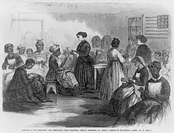 Durante a guerra, as mulheres no Norte defendiam reformas sociais e criaram sociedades de auxílio feminino, também chamadas de sociedades de auxílio aos soldados, que forneciam suprimentos aos soldados no campo de batalha e cuidavam dos soldados doentes e feridos. As mulheres no Norte também organizavam comícios militares, desfiles em vilarejos e bazares beneficentes.[101]
