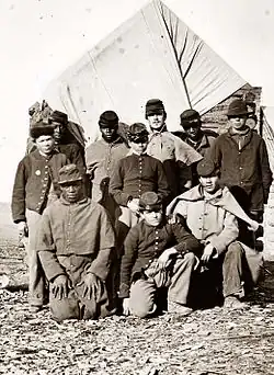 No primeiro ano da guerra, ambos os lados tinham mais voluntários do que conseguiam treinar e equipar eficazmente. Depois que o entusiasmo inicial diminuiu, depender apenas dos jovens que atingiam a idade adulta a cada ano não era suficiente. Ambos os lados promulgaram leis de recrutamento (alistamento obrigatório) para incentivar ou forçar o alistamento, embora relativamente poucos tenham sido recrutados. A Confederação aprovou uma lei de recrutamento em abril de 1862 para homens de 18 a 35 anos, com isenções para supervisores, funcionários do governo e clérigos. O Congresso dos Estados Unidos seguiu o exemplo em julho, autorizando o recrutamento da milícia nos estados que não conseguiam atingir sua cota com voluntários. Imigrantes europeus se juntaram ao Exército da União em grande número, incluindo 177.000 nascidos na Alemanha e 144.000 na Irlanda.[83] Cerca de 50.000 canadenses serviram, dos quais cerca de 2.500 eram negros.[84]