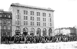 Greve geral em Helsinque, em 1917. Trabalhadores exigiram comida e uma mudança completa do poder legislativo, desde o governo russo ao parlamento finlandês.