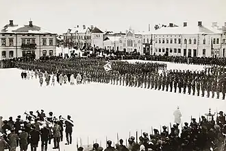 Parada de Jägers finlandeses em Vaasa, após retorno da Alemanha.