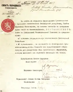 O reconhecimento da independência finlandesa pelo governo bolchevique foi a primeira expressão concreta da exigência de Lênin pelo direito das nações de se autodeterminarem.