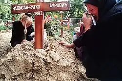 Os Chetniks predominantemente sérvios, um movimento realista iugoslavo e nacionalista sérvio e força de guerrilha, cometeram crimes em massa contra muçulmanos e croatas que são considerados um genocídio por vários autores, e também apoiaram a instauração de uma monarquia sérvia e o estabelecimento de uma federação iugoslava.[35][36] Os Partisans Iugoslavos liderados pelos comunistas conseguiram apelar a todos os grupos, incluindo sérvios, croatas e bósnios, e também se envolveram em assassinatos em massa.[37] Em 1945, a República Popular Federal da Jugoslávia foi estabelecida sob Josip Broz Tito, que manteve uma liderança fortemente autoritária que suprimiu o nacionalismo.[38]
