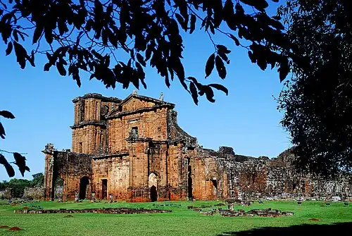 As missões jesuítas guaraníticas eram um conjunto de trinta cidades missionárias fundadas no século XVII pela ordem religiosa católica da Companhia de Jesus, entre os aborígenes guaranis e povos relacionados, cujo propósito era sua evangelização.[8] Geograficamente, quinze dessas missões se localizavam nas províncias atuais de Misiones e Corrientes, na Argentina; oito delas na atual região do Paraguai e as sete restantes, chamadas Missões Orientais, localizadas no sudoeste do Brasil. Todas estas regiões localizadas na jurisdição chamada Província Paraguaia localizada no Virreinato do Peru e regiões abrangentes do atual Paraguai, Argentina, Uruguai e partes da Bolívia, Brasil e Chile.[9]