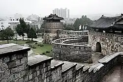 Quanto as construções fortificadas, o principal tipo na península era o chamado Sanseong ou castelos de montanha.[62] Este tipo de fortificação geralmente consistia de muros de pedra de altura baixa construídos ao redor das montanhas em forma de serpentina.[56]