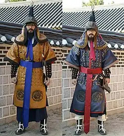Em 1392, o general coreano Yi Seong-gye liderou um golpe de estado para derrubar o Rei U da dinastia Goryeo, estabelecendo assim a Dinastia Joseon.[20] Esta dinastia recebeu o reconhecimento da China e se integrou ao seu sistema tributário sob o preceito conhecido como Mandato do céu, uma filosofia através da qual justificavam a legitimidade ou ilegitimidade de um governo.[21]