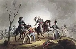 Cena da Guerra da Independência de 1808, representando as tropas imperiais em combate com a milícia catalã, por Joseph-Bernard Flaugier.