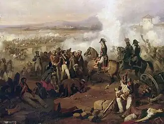 O exército francês em Espanha foi reforçado com 100 000 veteranos da Grande Armée, liderados pelo próprio Napoleão e pelos seus marechais.[48] No total, estavam mobilizados a norte do rio Ebro 278 670 soldados franceses, que enfrentavam cerca de 80 000 soldados espanhóis, impreparados e mal organizados.[49] Em novembro de 1808, Napoleão encetou uma brilhante ofensiva com envolvimento duplo das linhas espanholas.[50]