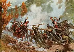 Somosierra: a cavalaria polaca ataca artilheiros espanhóis num passo de montanha.