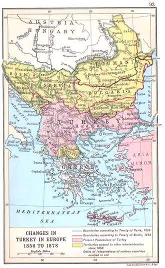 Depois do Tratado de Berlim de 1878 (linha vermelha).