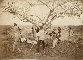![]() Sertanejos de Canudos rendidos pela cavalaria do Exército durante a última expedição ao arraial, em outubro de 1897. | |||