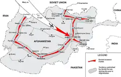 As primeiras forças soviéticas entraram no Afeganistão em 24 de dezembro de 1979, sob a liderança do premier Leonid Brezhnev.[28] Já a retirada deu-se quase uma década mais tarde, a 15 de maio de 1988, completando-se a 15 de fevereiro de 1989, já com Mikhail Gorbachev no cargo de líder da União Soviética. Devido à própria natureza desta guerra, o conflito travado no Afeganistão é chamado de a "Guerra do Vietnã da União Soviética" ou "armadilha de urso".[29][30][31] Alguns estudiosos acreditam que o custo econômico e militar deste conflito contribuiu consideravelmente para o colapso da União Soviética em 1991.[32]