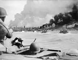 ![]() De cima para baixo e da esquerda para a direita: Ataque a Pearl Harbor; Caça-bombardeiro SBD Dauntless na Batalha de Midway; Fuzileiro naval em ação em Okinawa; Bomba atômica sobre Nagasaki | |||