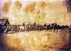 O Brasil, porém, estava despreparado para uma guerra. Seu exército estava desorganizado. As tropas que utilizou no Uruguai eram em sua maioria contingentes armados de gaúchos e da Guarda Nacional.[36] Enquanto alguns relatos brasileiros da guerra descreveram sua infantaria como voluntária (Voluntários da Pátria), outros relatos revisionistas argentinos e paraguaios depreciaram a infantaria brasileira como recrutada principalmente de escravos e da classe baixa sem terra (em sua maioria negros), que receberam a promessa de terras gratuitas para o alistamento.[37] A cavalaria foi formada a partir da Guarda Nacional do Rio Grande do Sul.[38][39]