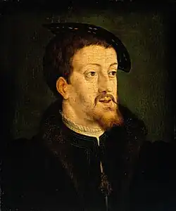 Em 31 de março de 1547, o rei Francisco I morreu e foi sucedido por seu filho, Henrique II da França.[100] Em 1551, Henrique II declarou guerra contra Carlos com a intenção de reconquistar a Itália e assegurar o domínio francês, em vez dos Habsburgos, dos assuntos europeus. Uma ofensiva francesa precoce contra Lorena foi bem-sucedida, mas a tentativa de invasão francesa da Toscana foi interrompida em 1553. Os franceses foram decisivamente derrotados na Batalha de Marciano, em 2 de agosto de 1554. No entanto, como resultado desta guerra, a França obteve três cidades francófonas: Metz, Toulouse e Verdun.[101] Além disso, a aliança com os otomanos havia atingido seu auge sob Henrique II da França com a Invasão da Córsega (1553)
