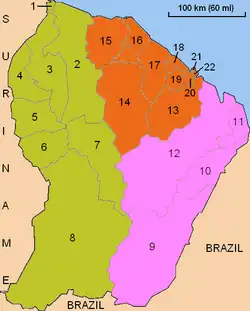 - ↑ Conselho Geral da Guiana Francesa (ed.). «Evolution institutionnelle: La Collectivité Territoriale de Guyane». Consultado em 8 de outubro de 2021