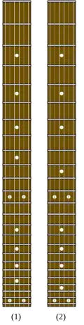 Feita de uma madeira diferente do resto do braço, como ébano, a escala é a parte do instrumento onde as cordas são apoiadas quando o músico quer dividir a corda. É sobre a escala que os trastes são montados. Além disso possui várias marcas em forma de círculo, losangos ou triângulos, incrustadas por marchetaria. As marcas são geralmente de madrepérola, marfim ou ébano. Em alguns casos são simplesmente pintadas e servem para ajudar o músico a identificar as casas na escala. Geralmente é usada uma marca na 3ª, 5ª, 7ª, 9ª,12ª, 15ª, 17ª, 19ª,21ª e 24ª casas e duas marcas na 12ª, às vezes na 7ª e na 24ª (quando existente) casas. Em algumas guitarras elétricas estas marcas podem ser luminosas, com LEDs ou fibras ópticas.