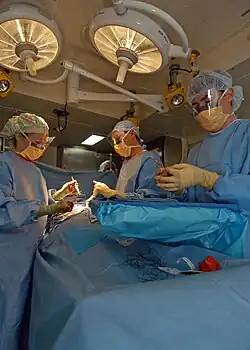 Reparo da hérnia sendo realizado a bordo do navio de assalto anfíbio USS Bataan.