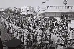 Em 14 de maio de 1941, o Haganá criou o Palmach (uma sigla para Plugot Mahatz - companhias de assalto), uma seção de comandos de elite, em preparação contra a possibilidade de uma retirada britânica e invasão da Palestina pelo Eixo. Seus membros, rapazes e moças, receberam treinamento especializado em táticas de guerrilha e sabotagem.[16] Durante 1942, os britânicos deram assistência no treinamento de voluntários do Palmach, mas no início de 1943 eles retiraram seu apoio e tentaram desarmá-los.[17] O Palmach, então com mais de 1.000 paramilitares, continuou como uma organização clandestina com seus membros trabalhando metade de cada mês como voluntários dos kibutzim, com o resto do mês destinado ao treinamento.[18] A unidade nunca foi grande - em 1947, somava apenas cinco batalhões (cerca de 2.000 homens) - mas seus membros não apenas receberam treinamento físico e militar, mas também adquiriram habilidades de liderança que os capacitariam posteriormente a assumir posições de comando no exército de Israel.