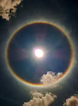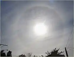 É um fenômeno natural que ocorre quando existem cristais de gelo na atmosfera e a luz do sol os atravessa, e é relativamente comum, até é possível vê-lo ao redor da Lua às vezes.[3][4][5]