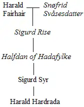 As sagas islandesas, particularmente Heimskringla de Snorri Sturluson, afirmam que Sigurdo, como pai de Olavo, era bisneto do rei Haroldo Cabelo Belo por linhagem masculina. A maioria dos estudiosos modernos acreditam que os ancestrais atribuídos ao pai de Haroldo Hardrada, juntamente com outras partes da genealogia dos Cabelo Belo, são invenções que correspondem às expectativas políticas e sociais da época dos autores (cerca de dois séculos após a sua vida) ao invés de realidade histórica.[4][10] Sua suposta descendência de Haroldo Cabelo Belo não é mencionada e não desempenhou qualquer papel durante sua própria época, o que parece estranho, considerando que ele teria fornecido legitimidade significativa em relação a sua reivindicação ao trono da Noruega.[4]