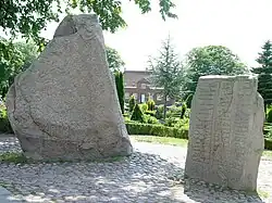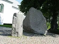 Haroldo, rei, ordenou que estes monumentos fossem erigidos em memória de seu pai, Gormo, e de Thyra, sua mãe. O Haroldo que conquistou toda a Dinamarca e Noruega e que fez dos dinamarqueses cristãos.