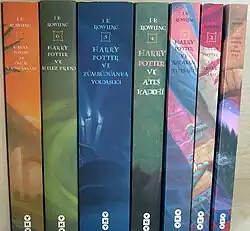 | Harry Potter e a Pedra Filosofal Harry Potter e a Câmara Secreta Harry Potter e o Prisioneiro de Azkaban Harry Potter e o Cálice de Fogo Harry Potter e a Ordem da Fênix Harry Potter e o Enigma do Príncipe Harry Potter e as Relíquias da Morte | |