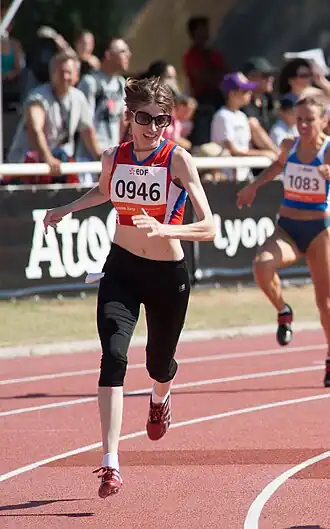 | Corredora paraolímpica Evgeniya com hemiplegia em tratamento | |