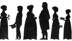A família Altenburg/Paus, que viveu na casa Altenburg (Altenburggården) em Skien por volta de 1820; mãe de Henrik Ibsen e sua família. Da esquerda para a direita: Marichen (Mariken) Bomhoff (nascida em 1806; ela era filha do meio-irmão de Johan Andreas Altenburg, Bertel E. Bomhoff (1768–1844) e prima de Marichen Altenburg; ambos foram nomeados em homenagem à avó paterna Marichen Barth; Marichen Bomhoff morava com a família Altenburg). Henrik Johan Paus (1799–1893; meio-irmão do pai (Knud Ibsen) e primo em primeiro grau da mãe (Marichen Altenburg) que morava com a família Altenburg desde os cinco anos de idade). Hedevig Paus, Sra. Altenburg (1863–1848; avó materna de Henrik Ibsen e irmã do padrasto de Knud Ibsen, Ole Paus). Johan Andreas Altenburg (comerciante; 1763–1824; avô). Christine Altenburg (mais tarde, Sra. Stenersen; 1798–1882; tia). Marichen Altenburg (mais tarde, Sra. Ibsen; 1799–1869; mãe de Henrik Ibsen).