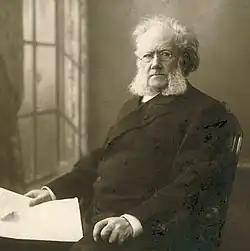 Henrik Johan Ibsen (ˈhɛnɾɪk ˈɪpsən|no) (Skien, 20 de março de 1828Cristiânia, 23 de maio de 1906) foi um dramaturgo norueguês, considerado um dos criadores do teatro realista moderno. Foi o maior dramaturgo norueguês do Século XIX. Foi também poeta e diretor teatral, sendo considerado o “pai do drama em prosa”[1] e um dos fundadores do modernismo no teatro.[2] Entre seus maiores trabalhos destacam-se Brand, Peer Gynt, Um Inimigo do Povo, Imperador e Galileu, Casa de Bonecas, Hedda Gabler, Espectros, O Pato Selvagem e Rosmersholm