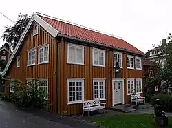 Reimanngården em Grimstad, Noruega. Henrik Ibsen trabalhou e viveu aqui como aprendiz de farmacêutico entre 1844 e 1850