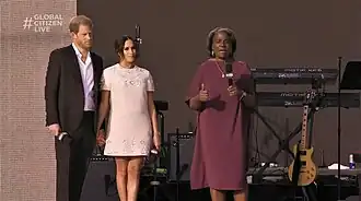 - ↑ «Meghan Markle and Prince Harry Promote Vaccine Equity at Global Citizen Live: 'A Basic Human Right'». People. 25 de setembro de 2021. Consultado em 25 de setembro de 2021