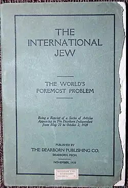 Ford foi resguardado como um pacifista durante boa parte da Primeira Guerra Mundial e na década seguinte ficou conhecido como notório antissemita, publicando uma série de quatro livros chamados O Judeu Internacional (The International Jew).[9]