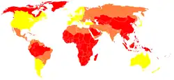 - ↑ GBD 2015 Mortality and Causes of Death, Collaborators. (8 de outubro de 2016). «Global, regional, and national life expectancy, all-cause mortality, and cause-specific mortality for 249 causes of death, 1980-2015: a systematic analysis for the Global Burden of Disease Study 2015.». Lancet. 388 (10053): 1459–1544. PMID 27733281. doi:10.1016/S0140-6736(16)31012-1
