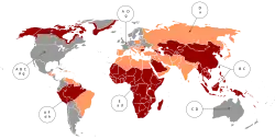 - ↑ GBD 2013 Mortality and Causes of Death, Collaborators (17 de dezembro de 2014). «Global, regional, and national age-sex specific all-cause and cause-specific mortality for 240 causes of death, 1990–2013: a systematic analysis for the Global Burden of Disease Study 2013.». Lancet. 385 (9963): 117–71. PMC 4340604