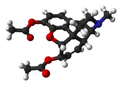 | Nome IUPAC | (5α,6α)-7,8-didehidro-4,5-epoxi-17-metilmorfinano-3,6-diol diacetato | ||||||||||||||