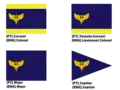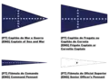 Há uma simbologia oficial que define bandeiras-insígnias para patentes do oficialato.[19]