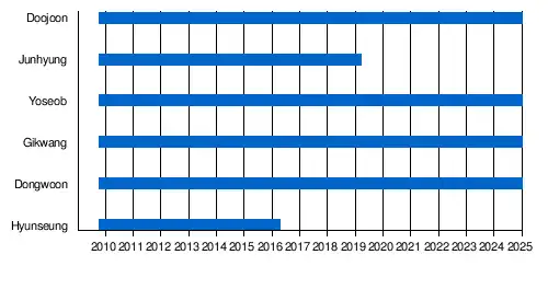 - Jang Hyun-seung (em coreano: 현승), nascido Jang Hyunseung (em coreano: 장현승) em 3 de setembro de 1989 (36 anos) em Guri, Coreia do Sul